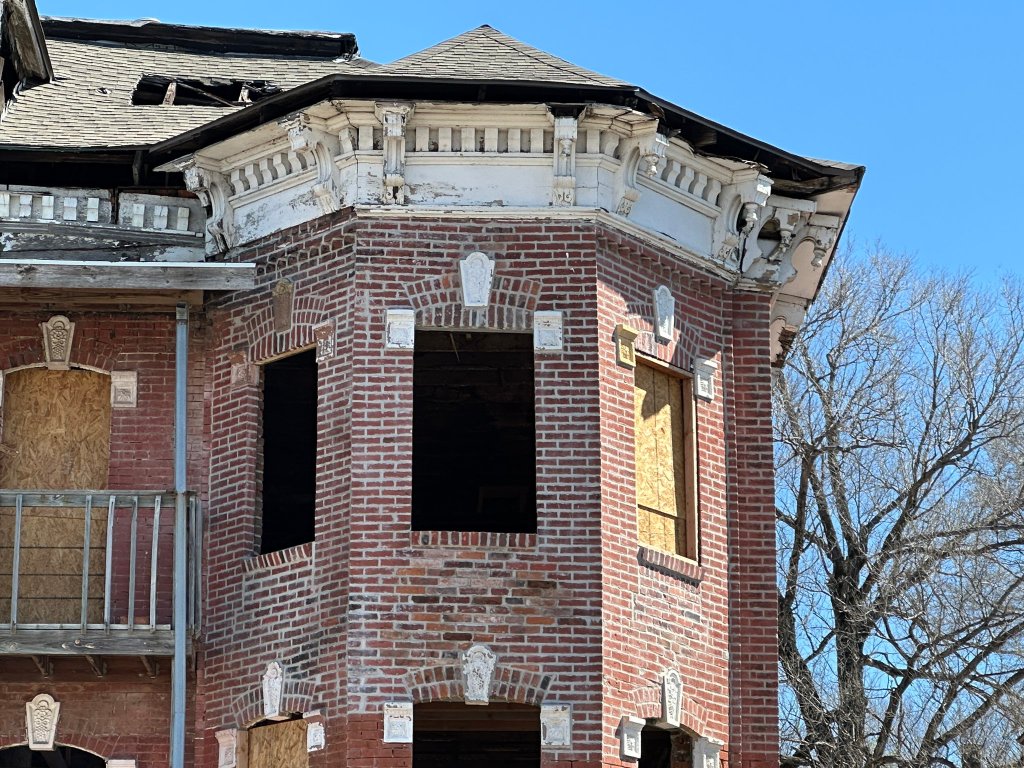 Throughout 2024, boards came down from the windows and slowly, but surely, some masonry repair work was made. However, for all the work that has gone on to restore the building, mortar continues to fall out of sections of brick, leaving the building’s exterior walls in a precarious situation. It’s obvious that some work has been done on the inside of the building in the form of new wood framing and stairs being built.