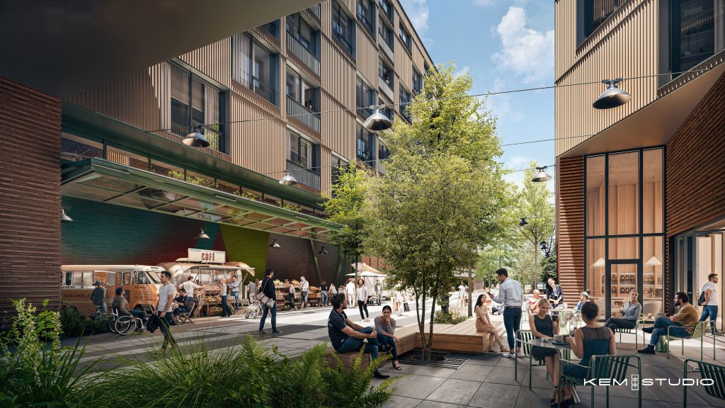 KEM’s design for 4th and Minnesota is modern and clad in a mixture of roman brick and metal panels.