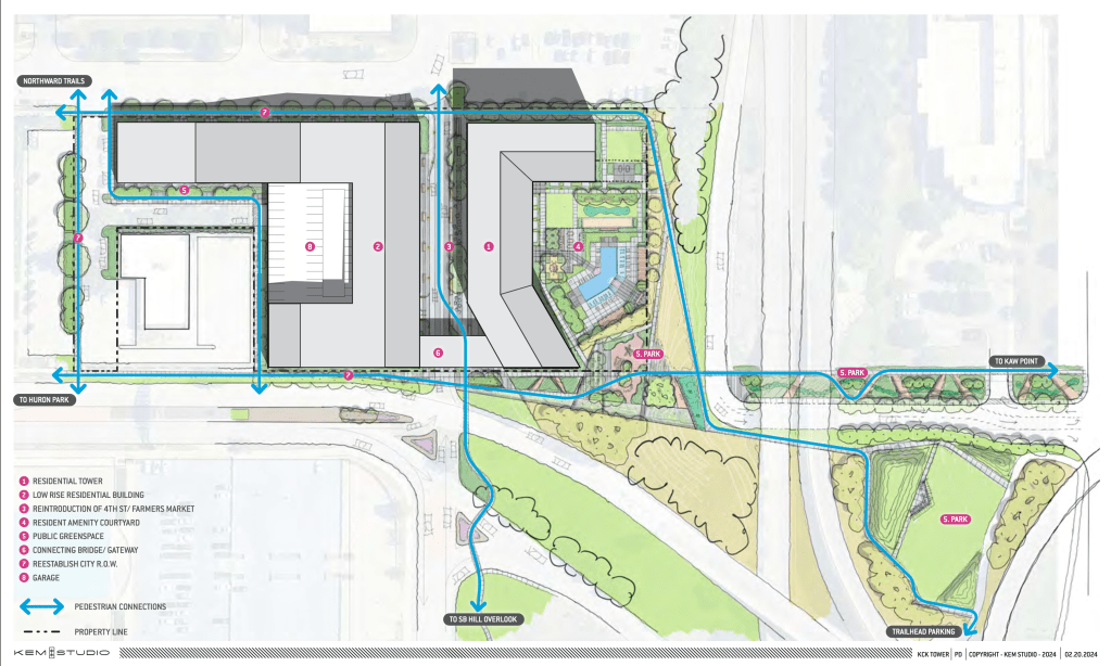 Planned is 2-phase project featuring 472 apartments, 26,650sf of commercial space, 28,300sf of new green space, and a 384 parking spaces spread out between a parking garage and surface spaces. 4th and Minnesota represents the biggest project to be unveiled in Downtown KCK in decades and is one of several projects that could transform the landscape of Downtown. Others include the redevelopment of the nearby Reardon Convention Center, a new apartment building at 6th and Ann, the redevelopment of the former UMB Bank Building at 6th and Minnesota, and a new building for the KCK Community College at 7th and State.