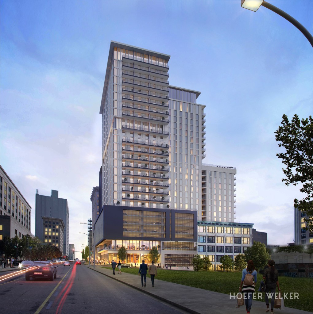 The 25-story tower will feature 318 apartments, 24,000sf of retail space, and a 438 space parking garage.