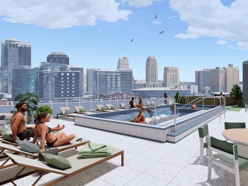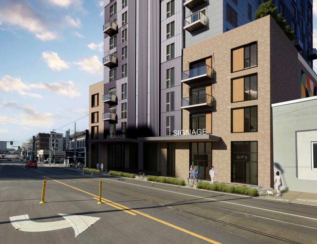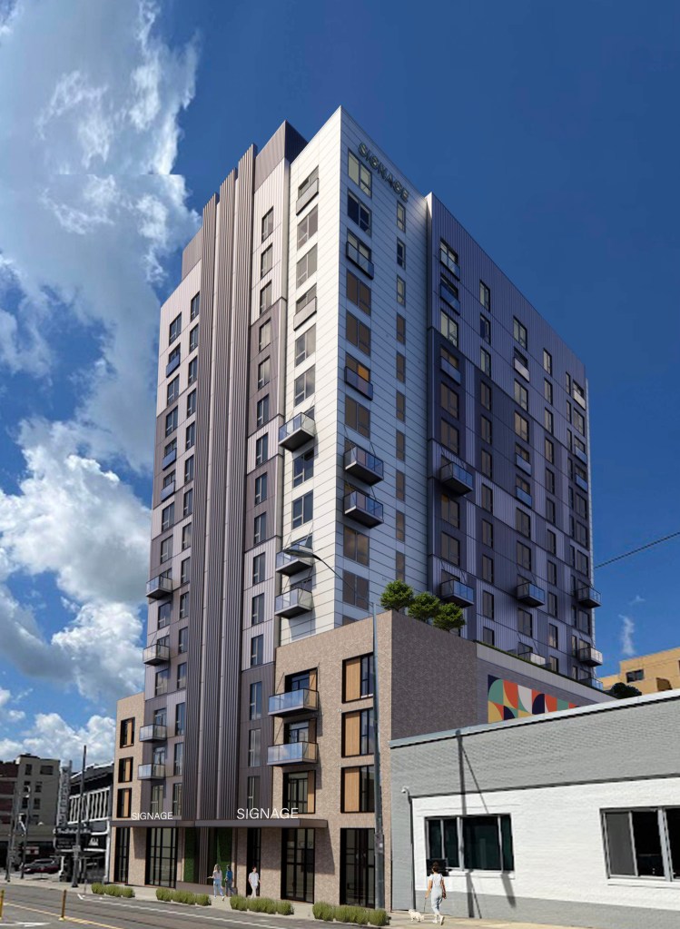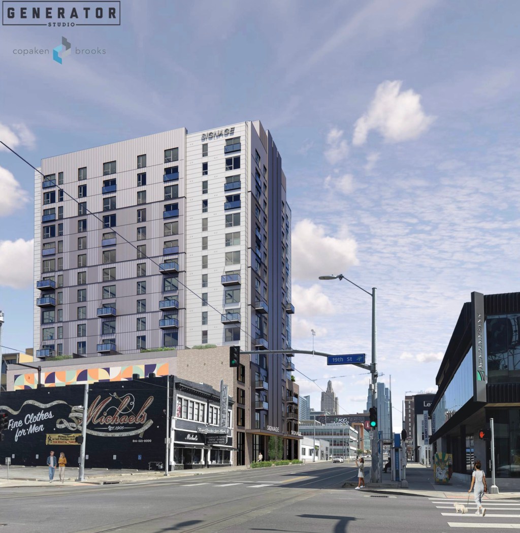 Located at 1818-22 Main, the site of a recently demolished former nightclub and historic bank building, the 16-story, 191ft tall tower will add 147 new apartments and 1000sf of commercial space to the vibrant Crossroads neighborhood and to the Streetcar line. A parking garage, accessed from the alley, will feature 113 parking spaces. The Refinery also represents Copaken Brooks’s third residential building, and tallest, to be constructed in the Crossroads neighborhood in recent years.