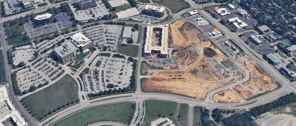 Per the application, which doesn’t include renderings besides a basic site plan, BNIM is leading the architectural design for the project. The entire project also encompasses the undeveloped areas at the “Galleria 115” development along Nall Avenue. When coupled with Occidental’s vision for the future of the Aspiria Campus, the mega-block bound by College, Nall, 119th and Metcalf will become a sort of suburban central business district that includes millions of square feet of office space, hundreds of thousands of square feet of retail space, thousands of residential units, thousands of parking spaces (many of which are structured) and hundreds of hotel rooms.