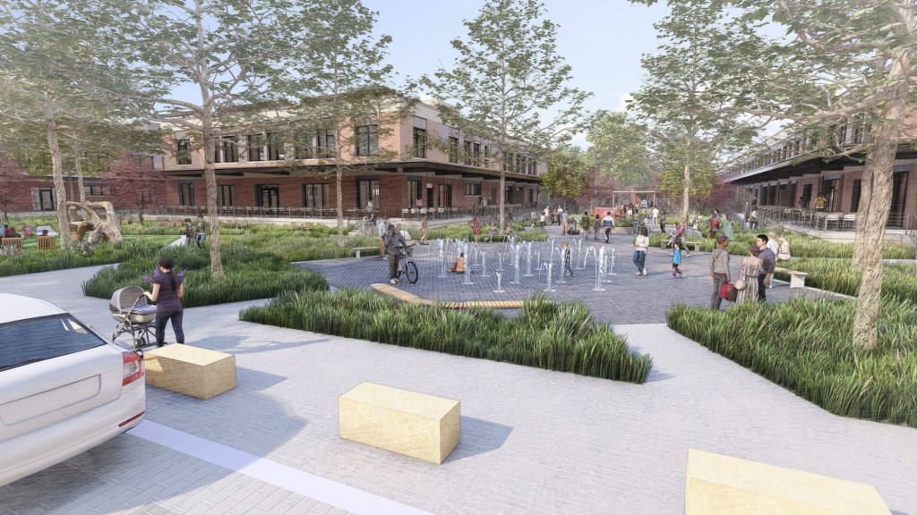 Arnold’s plans for the site include 389 loft departments, of which 328 will be designated as affordable (30% to 80% of the area’s median income – AMI) with the remaining 61 being market-rate, a health clinic, a 30,000sf daycare facility, a 30,000sf public market, green space, and a series of clean energy and green infrastructure (such as solar panels and rooftop gardens).