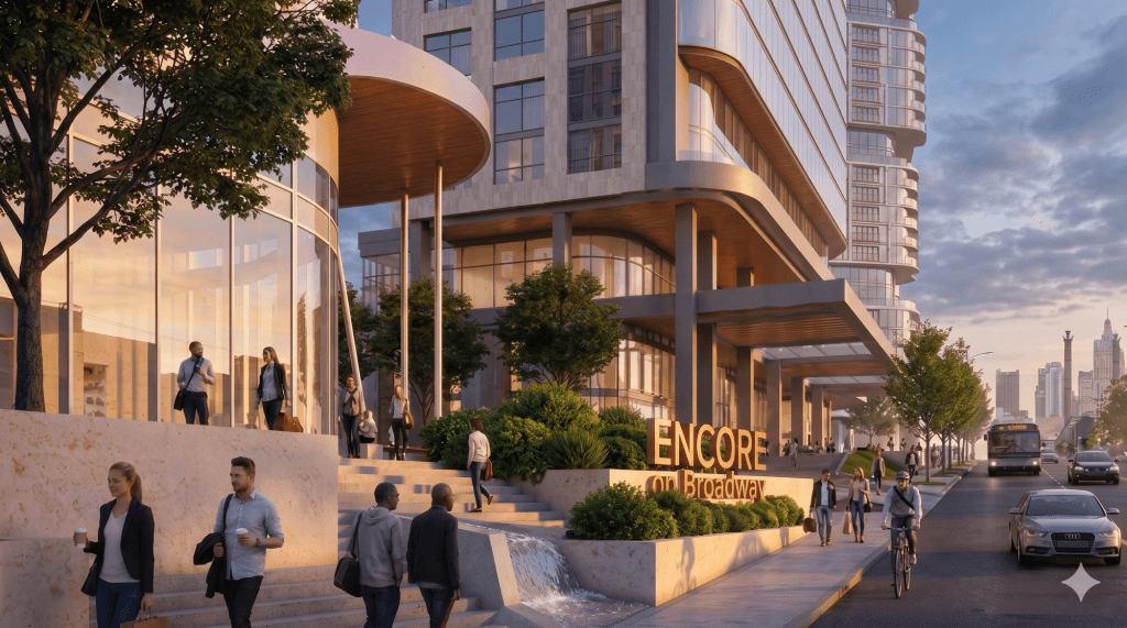 At this month’s PortKC Development Committee meeting, the full scope vision of “Encore on Broadway” was revealed, and it includes much more than just the 33-story apartment tower.